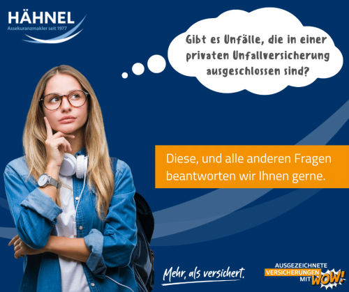 In modernen Versicherungsverträgen sind diese Unfallfolgen mitversichert. Andere Ausschlüsse, wie z.B. einen Kriegsausschluss oder Ausschluss dauerhaft pflegebedürftiger Personen oder Ausschluss von Straftaten kann man nicht mitversichern.